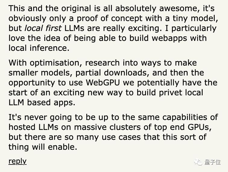 有人提出,现在虽然只是一个概念验证,但本地运行的语言模型真的很令人兴奋。