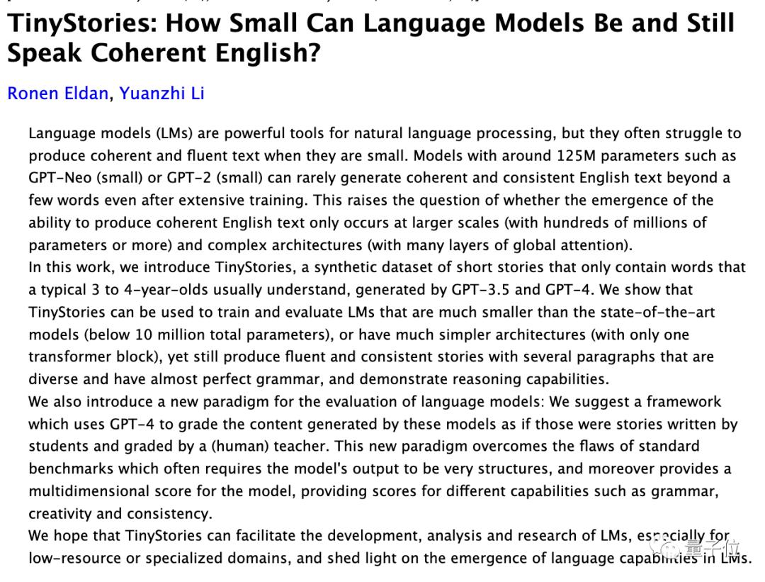 2023新视野数学奖得主Ronen Eldan、2023斯隆研究奖得主李远志联手,验证了1000万参数以下的小模型,在垂直数据上训练也可以学会正确的语法、生成流畅的故事、甚至获得推理能力。