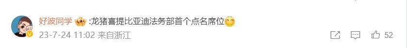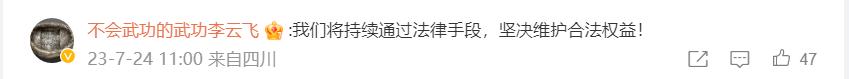 比亚迪集团品牌及公关处总经理李云飞(@不会武功的武功李云飞)也出现在上述微博评论区,并发文表示:“我们将持续通过法律手段,坚决维护合法权益!”“还有一些在法务过程中,在路上!”