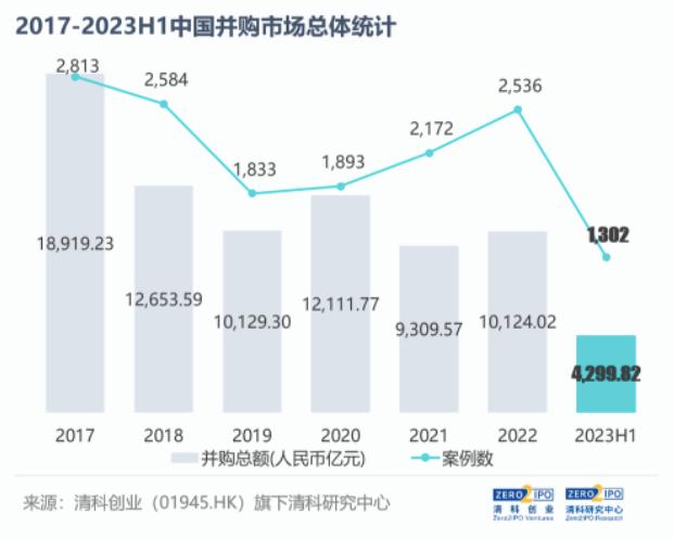 数据也是如此体现——清科研究中心并购报告显示,虽然2023年上半年中国并购市场的交易数量有所回升,但涉及交易金额下降了9.5%至4200亿元。而受小规模交易案例增多影响,所发生的并购平均交易规模仅为3.30亿元,同比下降了16.6%。