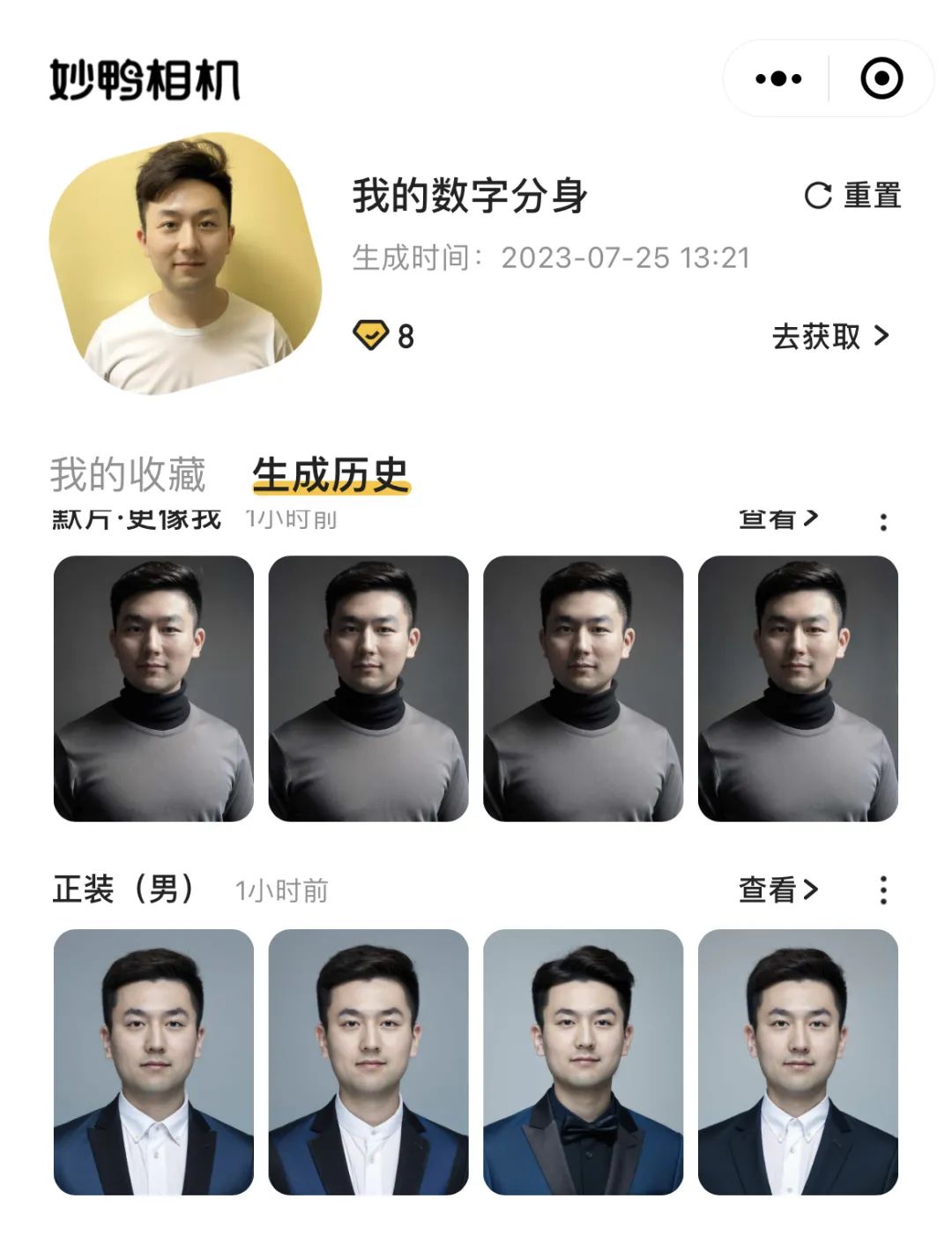 更多持“不会替代”观点的用户更在意的还是生成照片的质量。“写真除了美,还要记录当时的状态,这点妙鸭做得不好,模板一加,生成的图看不出年龄。”一位体验者说。