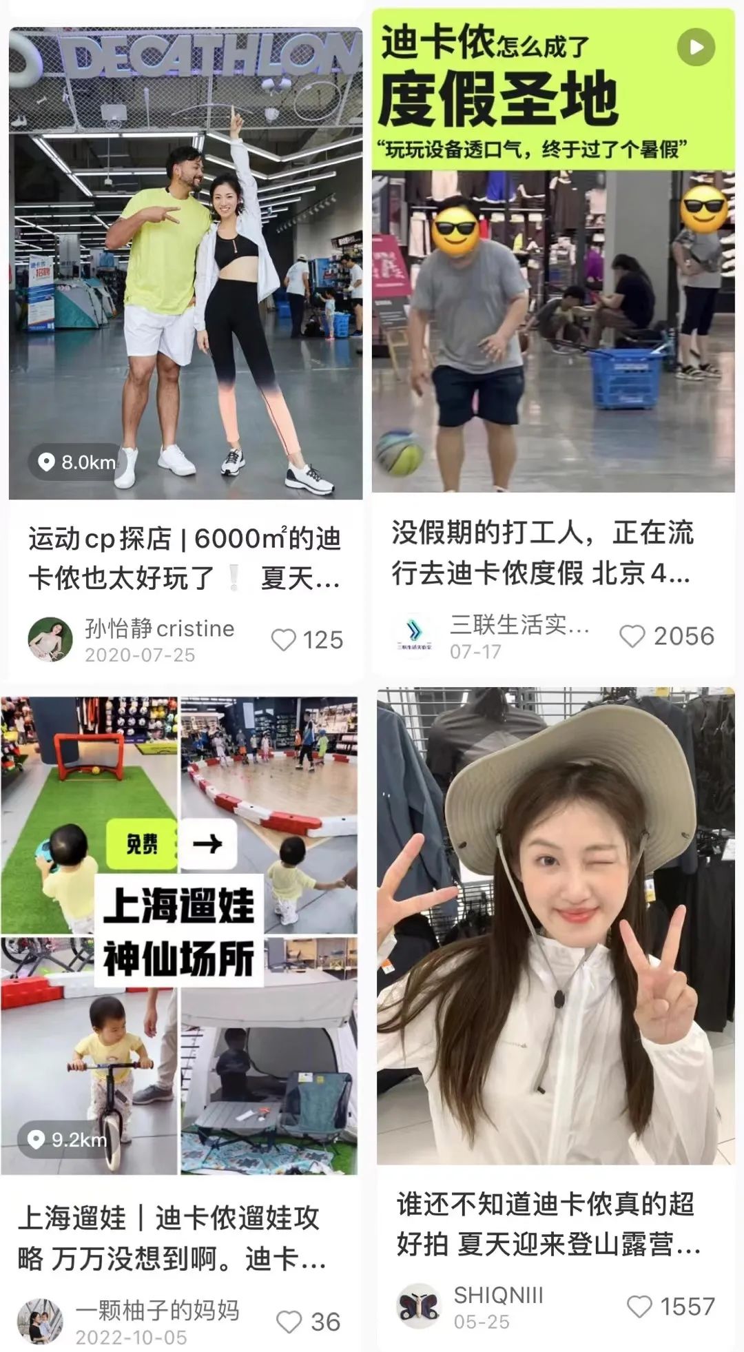这也是品牌有意打造的形象。迪卡侬在小红书上的商业笔记,视频探店占据了很大比例,突出卖点包括一站式购齐、好逛、好拍照等。