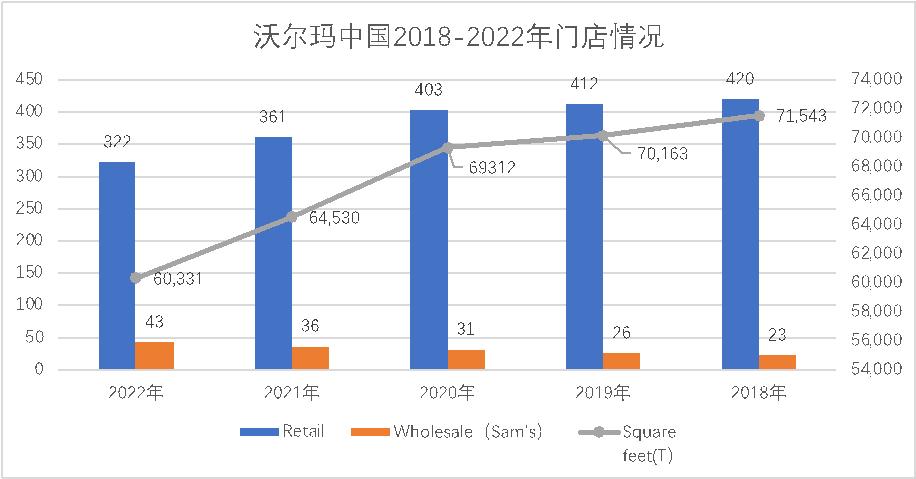 沃尔玛中国两大业态门店数量情况制图:乾行