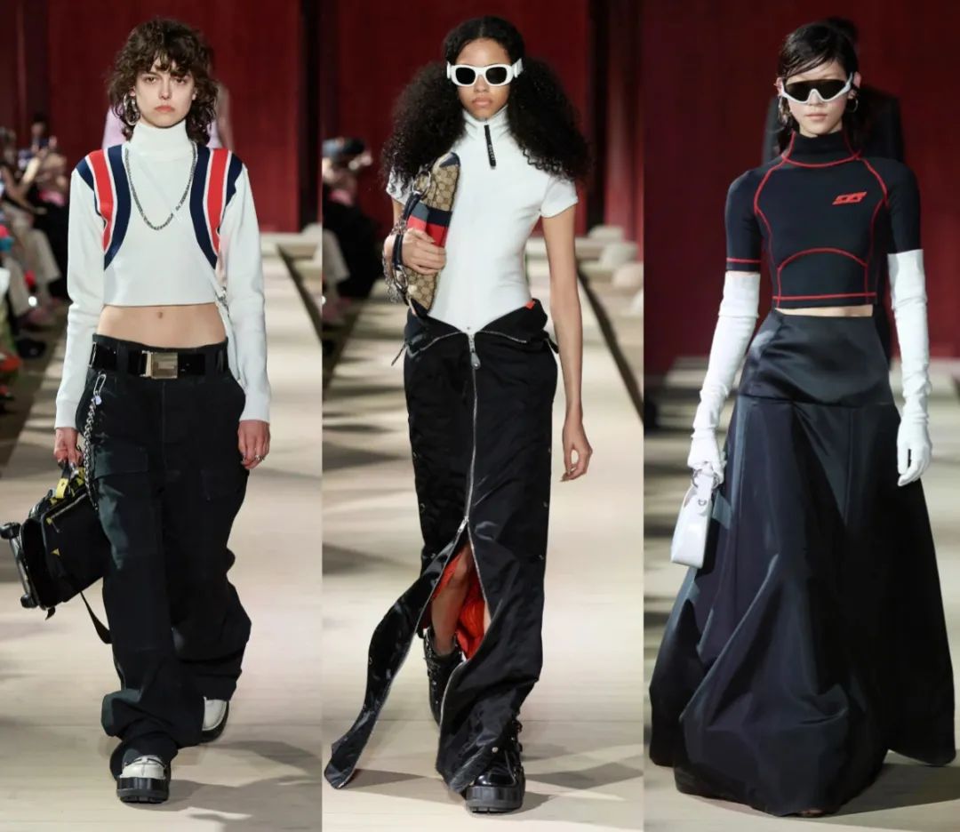 从80年代的电视健身到如今的运动秀场,紧身衣早已在运动和时尚界占有不败之地,比如此次Gucci 2024的早春大秀,直接将运动风搬上T台,多件运动紧身衣打造前卫和华丽的未来感。