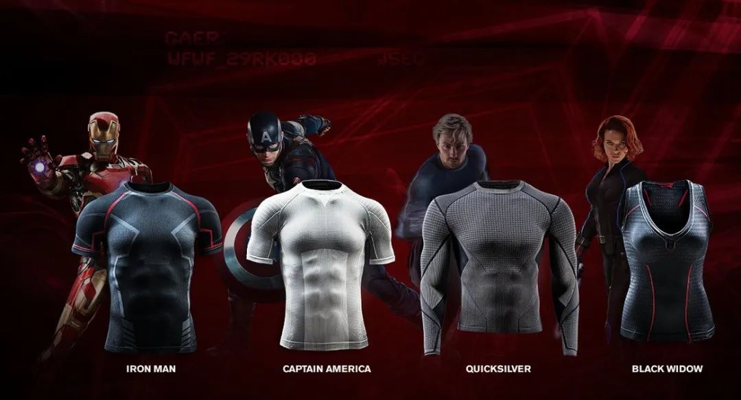 早些年Under Armour和漫威联名出了多款紧身衣,并称「这些就是超级英雄们在拍戏时所穿的紧身衣系列」。专业的运动机能配上英雄同款,在当时也掀起了购买热潮,并获得一众好评。