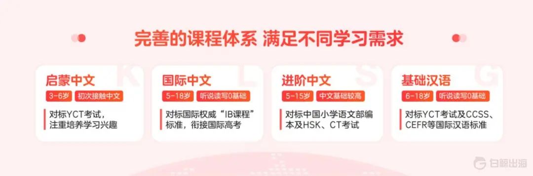 这种课程分类设置在领格等其他平台也基本类似,大多数学生的情况是具备中文听说能力,但拼音、写字和阅读能力不佳。