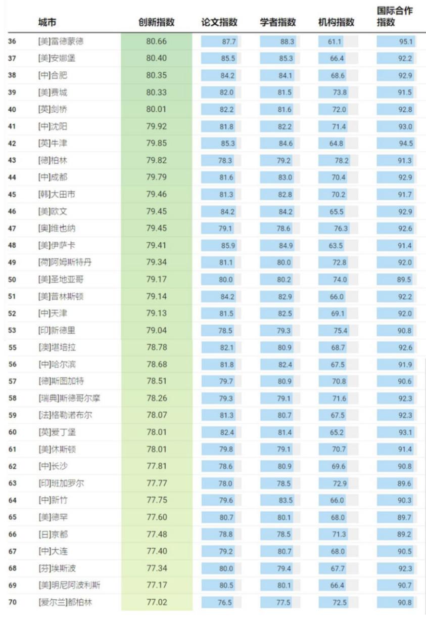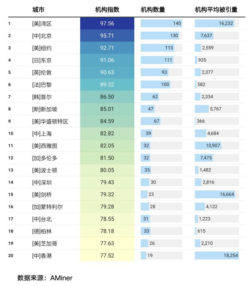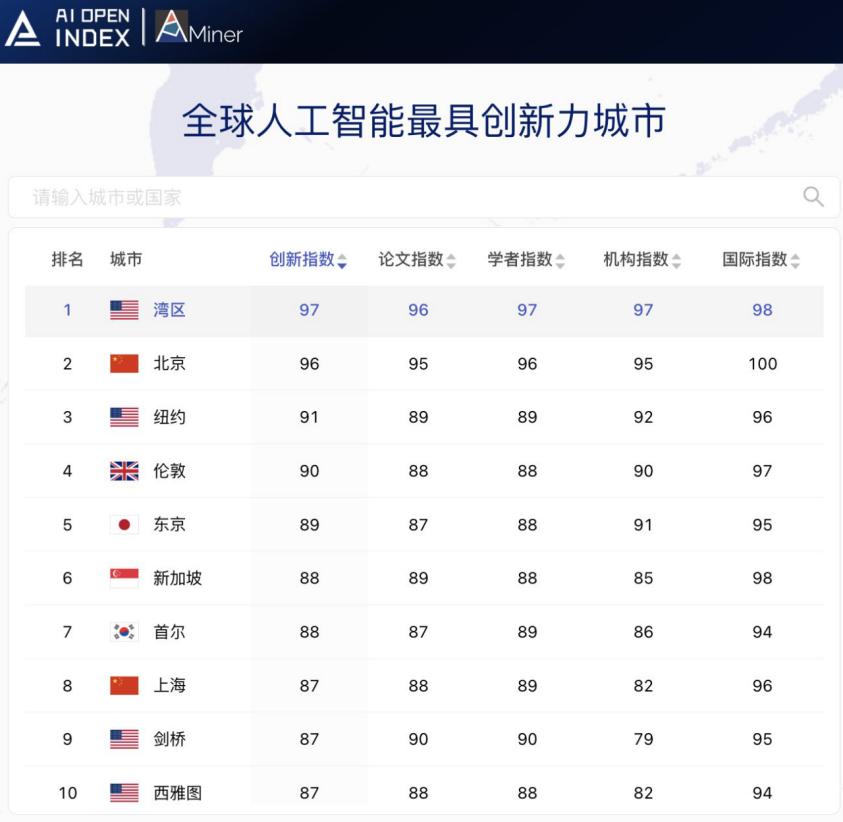 2023年全球人工智能最具创新力城市榜单:北京、上海冲进top10,中国19城位列前100