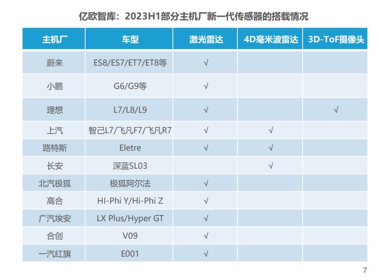 至2023H1,一些新一代传感器已在部分主机厂车型搭载,比如激光雷达已经在新势力车企、传统车企孵化的新进品牌等主推车型上得到应用,新一代传感器已具备小规模上车的能力。