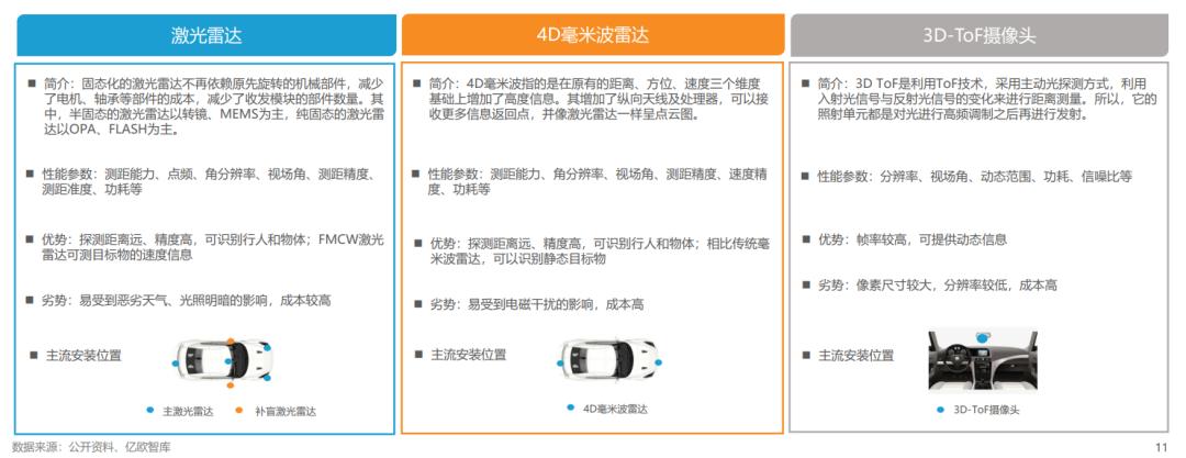 市场上典型的新一代传感器包括激光雷达、4D毫米波雷达、3D-ToF摄像头