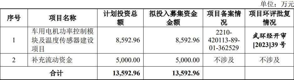 公司IPO募投方面,本次公司拟募资1.35亿元,资金将用于车用电机功率控制模块及温度传感器建设项目、补充流动资金。