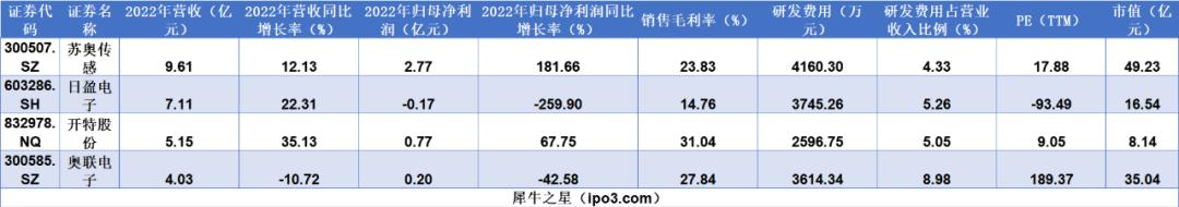 同行业可比上市公司包括苏奥传感、奥联电子、日盈电子。