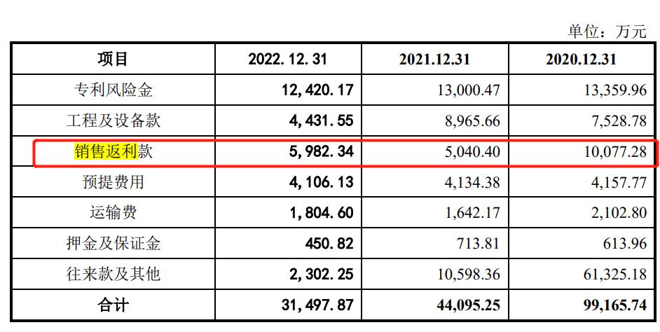 但在这些知名厂商面前,通力股份的话语权并不高。例如,每年通力股份都在计提销售返利,返还客户。2020-2022年,企业销售返利金额分别为1.01亿元、5040.4万元和5982.34万元。