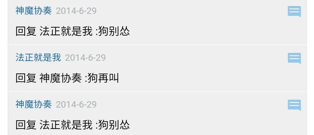 还有当年 @ 法正就是我和 @ 神魔协奏因为游戏上的分歧,在秦时明月手游贴吧里互喷了一年。一个人说 “ 狗再叫 ” ,另一个人说 “ 狗别怂 ” 。哪怕大年三十,两个人也依旧在喷。