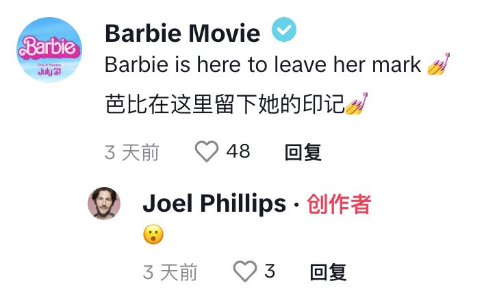 电影官方也趁着这波热潮,跑到各个有芭本海默的地方留言,狠狠地刷了一波存在感。