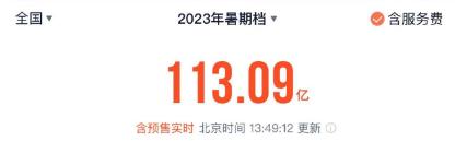 据灯塔专业版实时数据,截至7月24日21时11分,2023年暑期档(6月1日~8月31日)总票房(含预售)已突破110亿元。截至7月26日13时49分,暑期档总票房(含预售)已突破113亿元。