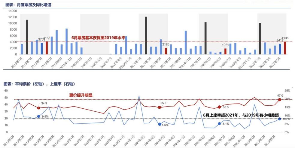 国海证券研报分析,今年6月票房已基本恢复到2019年的水平,但票价提升明显。