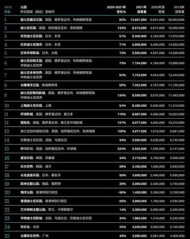 但迪士尼有所不同。迪士尼可以追溯到20世纪20年代,100余年的历史让其拥有海量的IP资源和经验。根据公开资料,在全球前25名主题乐园中,带有“迪士尼”名称的主题公园占据了将近半数。但为了保持IP的稀缺性,100年间其在全球也就建了6座主游乐园