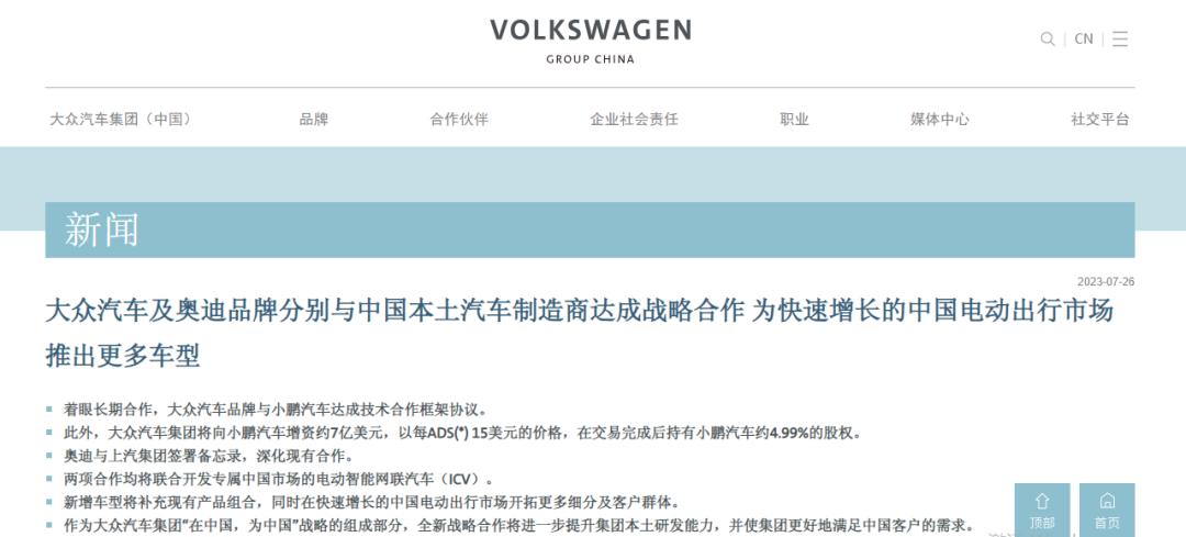 7月26日,大众汽车还宣布奥迪与上汽集团签署战略备忘录,进一步深化现有合作。