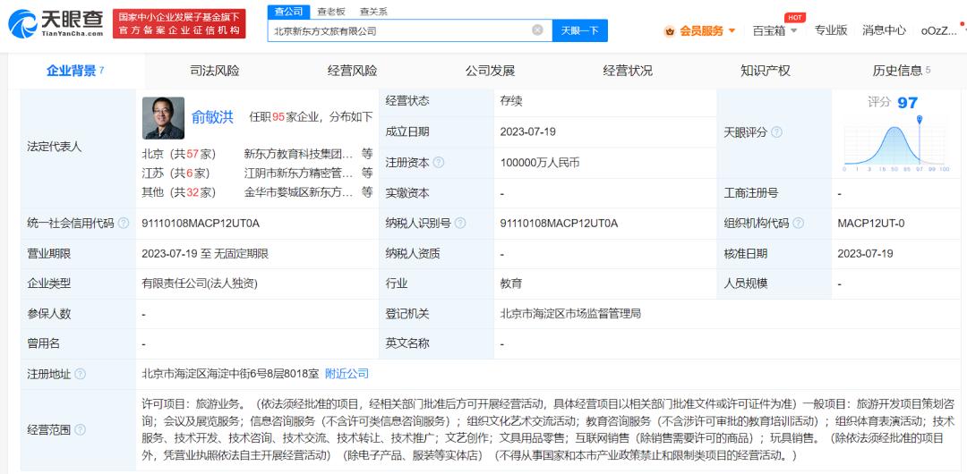 ①7月19日,新东方全资子公司——北京新东方文旅有限公司正式成立,注册资本为10亿元。