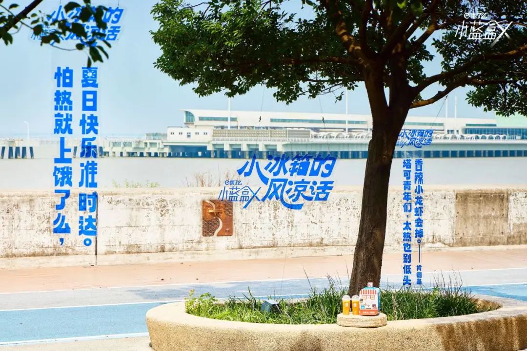 小冰箱营销也铺陈到了线下,饿了么还在40°C的火炉上海宝山滨江,打造了「小冰箱的风凉话展」。