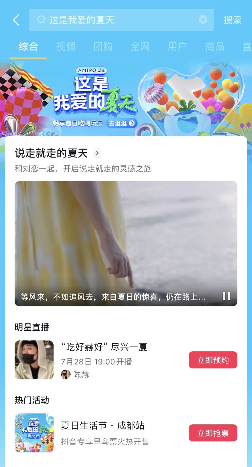 今年,抖音生活服务打造了首个以季节为主题的平台级节点营销活动「这是我爱的夏天」。平台方邀请众多头部明星达人,联合衣食住行等各行业商家,共同为用户打造不一样的夏日体验。