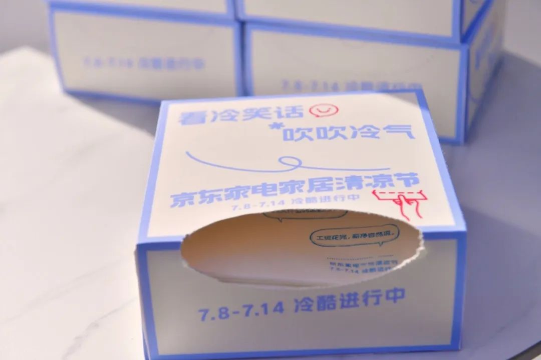 在站台内,还有印有冷笑话的卫生纸,让人们在擦汗之前可以会心一笑。京东耗时5小时搭建了这个“自带空调的公交站“,在马路边给大家进行“局部降温”,守护高温下的路上行人和户外劳动者,让走过路过的朋友特别是高温工作者们,都能能有个地方歇歇脚、擦擦汗、吹吹空调。