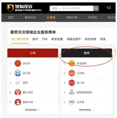 这样的情况并非个例,在黑猫投诉线下餐饮机构类目的黑榜里,库迪被“送”上榜首。
