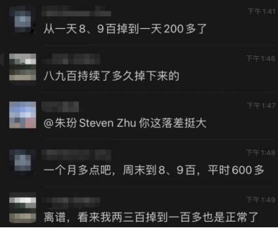 这之中,有从一天八九百杯掉到一天两百多杯的,也有一天两三百杯掉到一百多杯的。