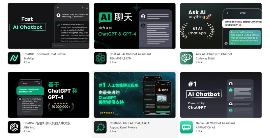 值得一提的是,在iOS版ChatGPT发布后,安卓生态中快速涌现出众多“类ChatGPT”应用,目前在谷歌应用商店中,排名靠前的类ChatGPT应用下载量已经突破千万次,比如Ask AI、Nova,其中Nova就是一款由OpenAI的ChatGPT和GPT-4支持的AI聊天机器人应用。