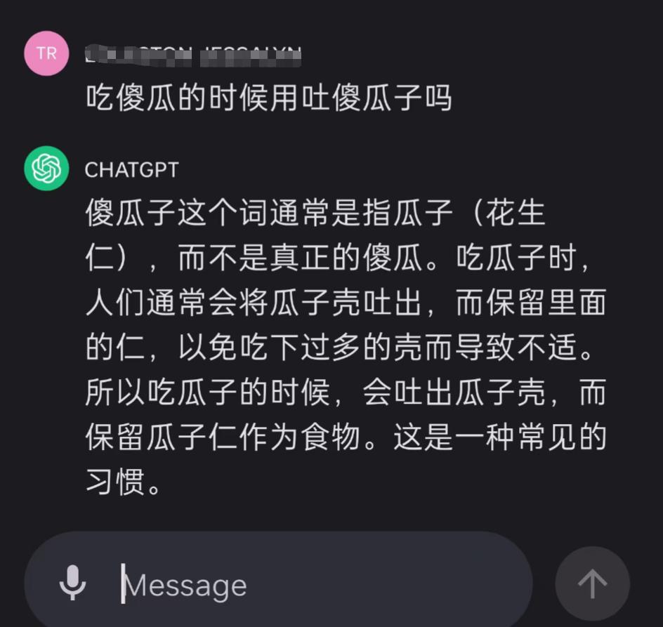 另外对于脑筋急转弯这类题目ChatGPT仍然不能很好地处理,仍然不会意识到这是一个脑筋急转弯,此前我体验过微软在Windows 11中推出的Copilot智能助手,其对于脑筋急转弯以及成语的理解能力都要超过此次体验的安卓端免费版ChatGPT。