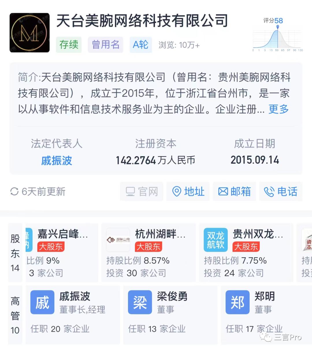 此外,据天眼查显示,杭州湖畔山南股权投资合伙企业(有限合伙)是美ONE关联公司天台美腕网络科技有限公司的股东之一。