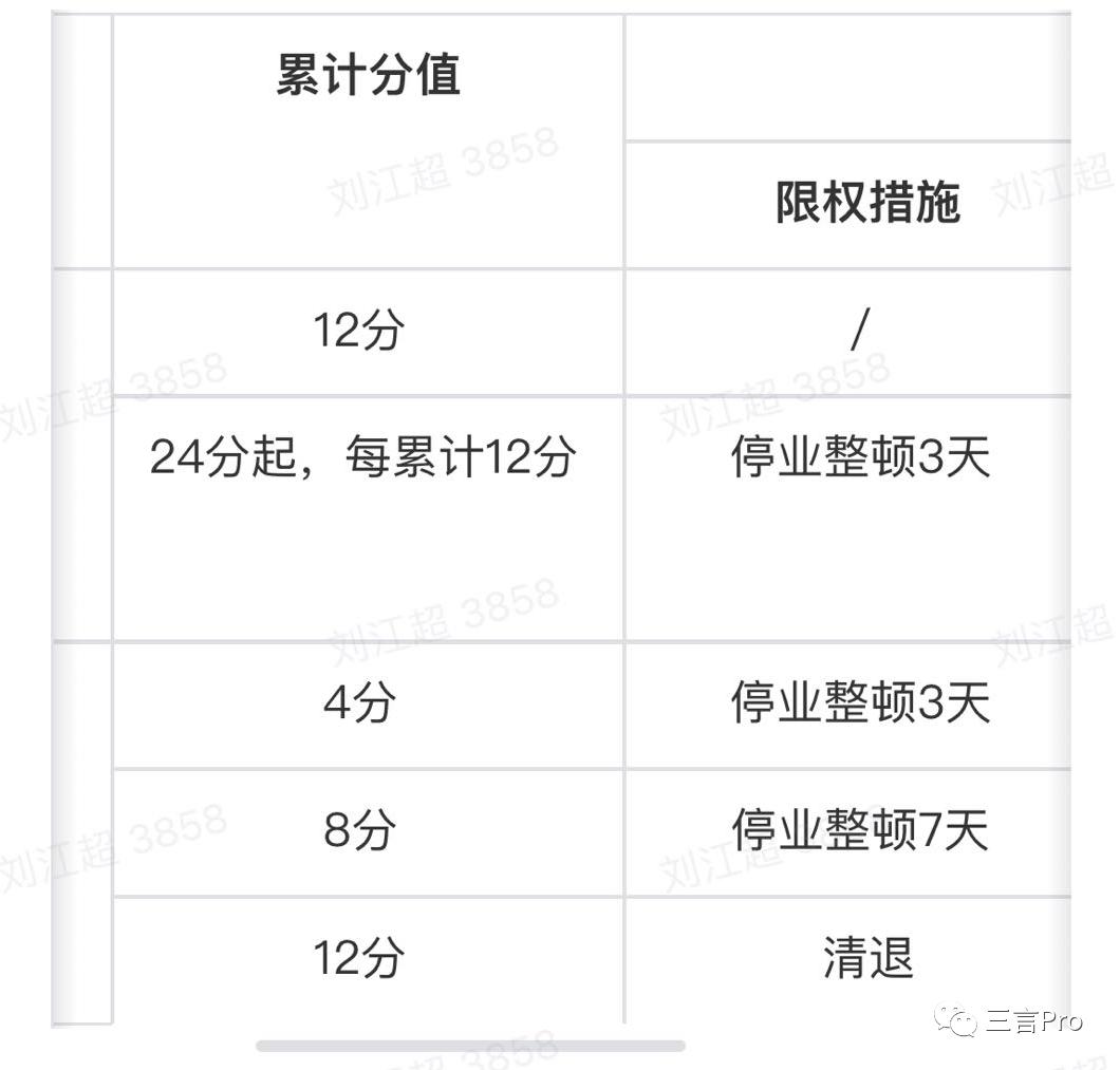 当商家A类违规积分累计12分时,会被平台扣除2000元违约金;24分起,每累计12分,商家将被停业整顿3天、扣除2000元违约金,并参加节点考试。