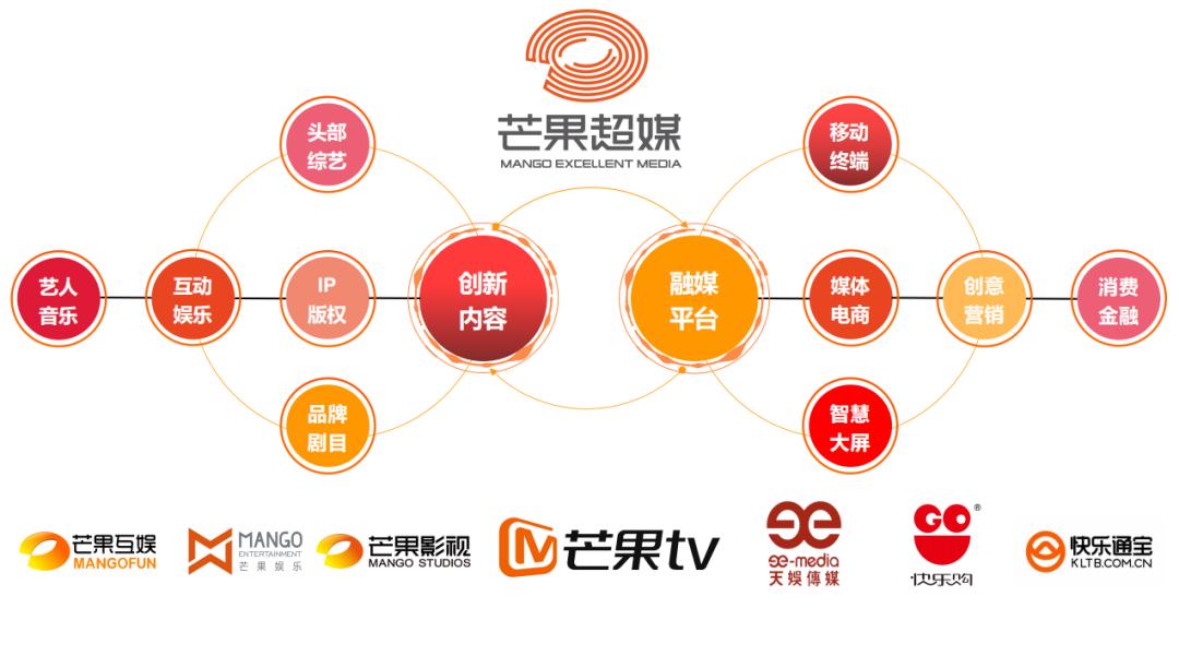 其次来说芒果超媒。芒果超媒原为创业板公司快乐购,实控人同样也是湖南广播电视台,是专门做电视购物的。2018上半年,快乐购以发行股份的方式,作价115.5亿收购快乐阳光、天娱传媒、芒果影视、芒果娱乐和芒果互娱等5家公司,完成资产重组。整体可以理解为,湖南广电借助快乐购这个上市公司,把其他资产一次性注入,形成以视频网站芒果TV为核心,附加从新媒体平台运营到内容制作、艺人经纪、IP运营的完整产业链条的整体上市。