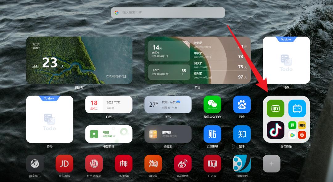 而 Wetab 支持我们像手机一样,将网站以 App 图标的方式显示在主页,我们甚至还能整上几个大文件夹把一些同类型网站直接收纳在一起: