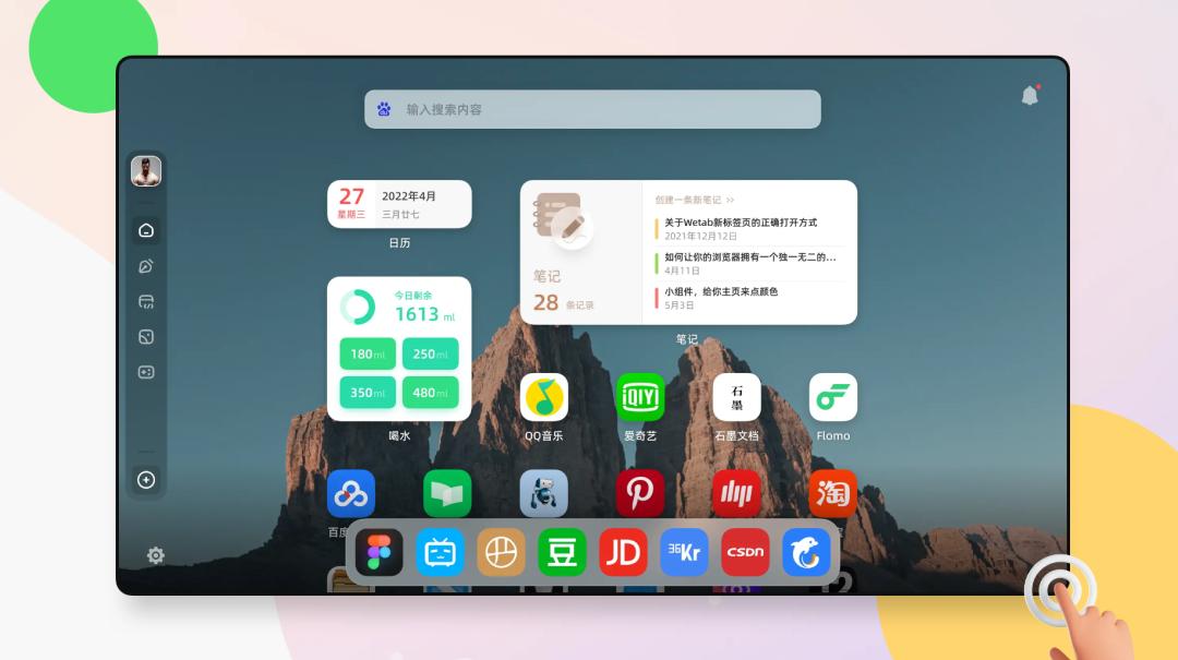 除了前面说的类手机桌面布局,Wetab 提供的各种小组件也很实用,而且不管是展现形式还是交互方式,基本上也是照搬了手机上的那套逻辑。