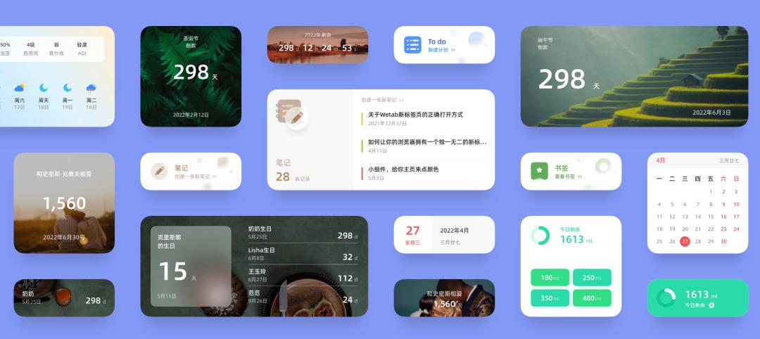 Wetab 提供这些小组件,除了有多种尺寸供我们选择,它也支持我们像手机一样直接对小组件进行交互。