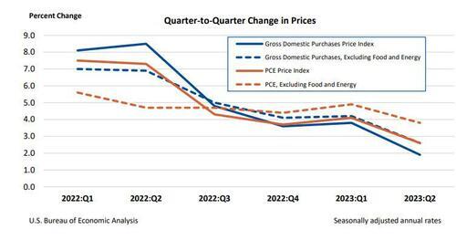 此外,通胀数据也出现了明显放缓。美联储最为关注的PCE价格指数在第二季度增长了2.6%,较上一次的4.1%显著减缓。而不包括食品和能源的PCE核心价格指数增长了3.8%,略低于先前值的4.9%,同样也显著减缓,但稍微低于经济学家的预期水平。