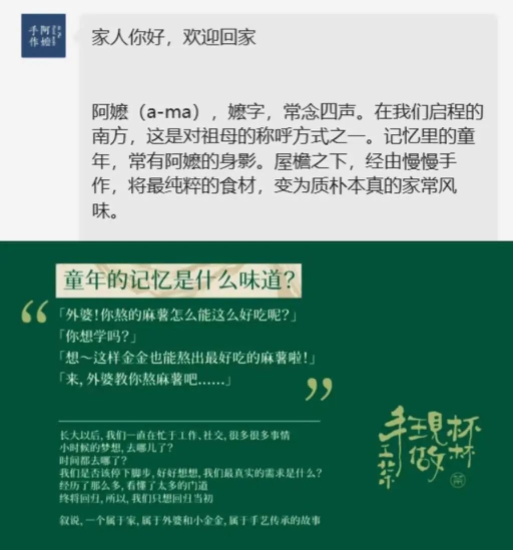 ◎上:阿嬷手作微信公众号宣传界面,下:小金金现制手作茶品牌故事