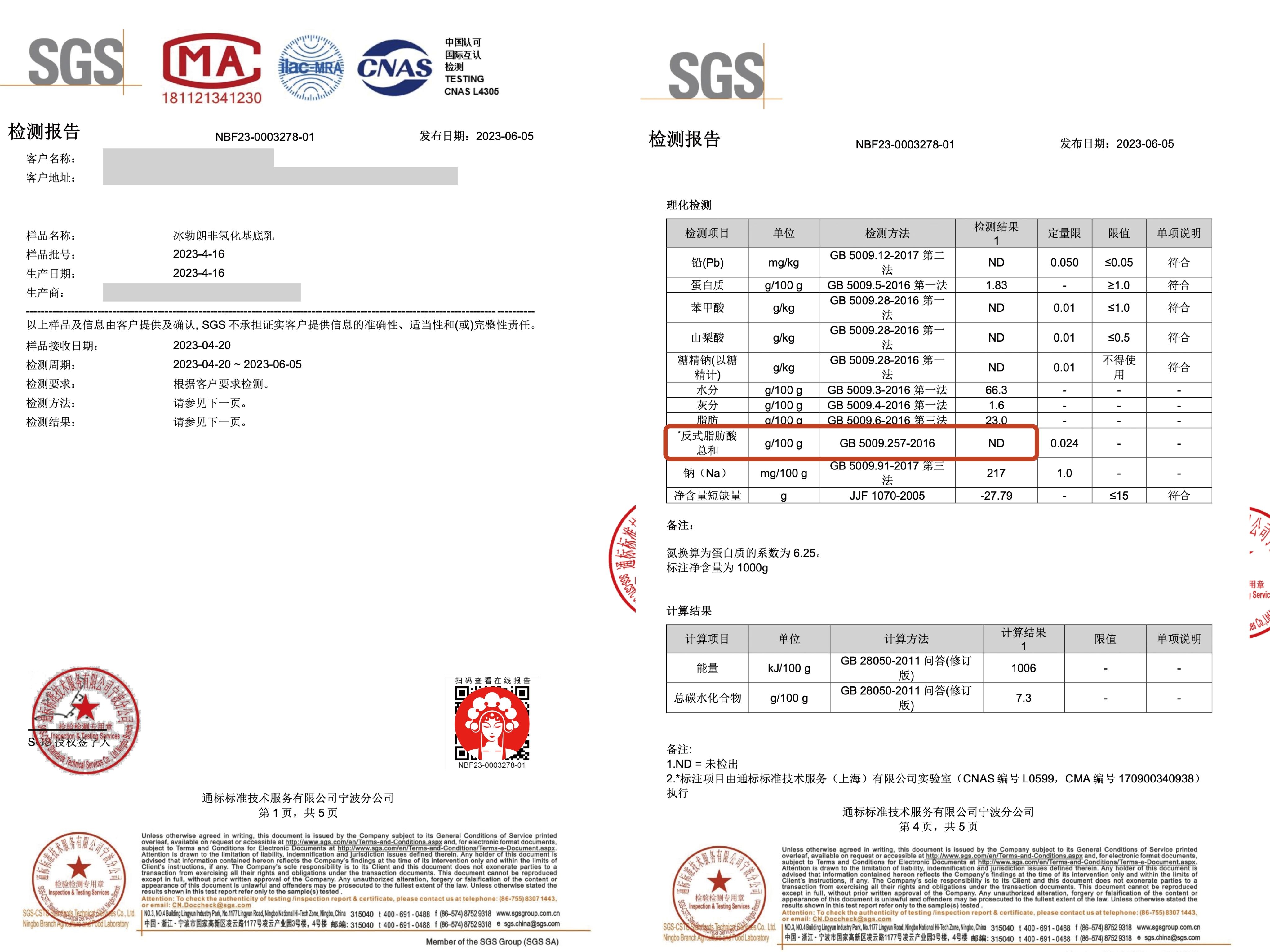 这一次,霸王茶姬引入“冰勃朗非氢化基底”,就是在基底层面为原叶鲜奶茶产品找到了一个更健康的解决方案。通过创新采用“0奶精、0植脂末、0氢化植物油”的全新工艺,从原料源头端解决了消费者对原叶鲜奶茶的“健康担忧”。经专业检测机构SGS检测,冰勃朗非氢化基底乳中未检出“反式脂肪酸”成分,成为新一代“真0反”基底产品。