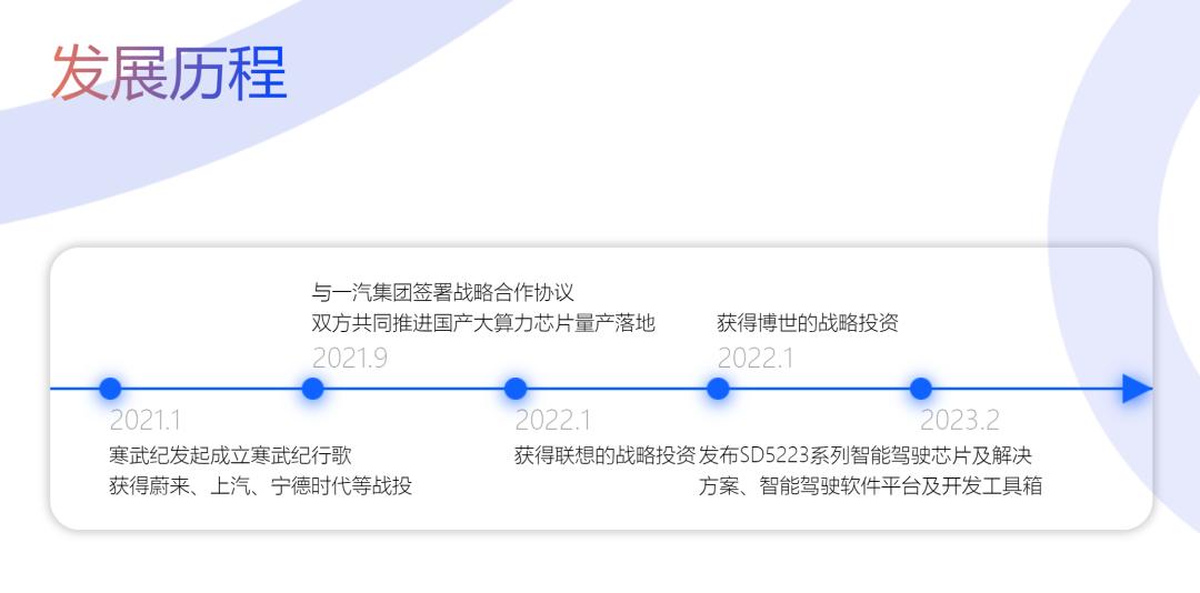 行歌科技于2021年1月由寒武纪主导成立,是寒武纪控股子公司。行歌科技肩负寒武纪布局车载智能芯片应用场景的重要使命,其主营业务是致力于打造高性能的智能驾驶SOC芯片、智能驾驶软件平台以及参考解决方案。