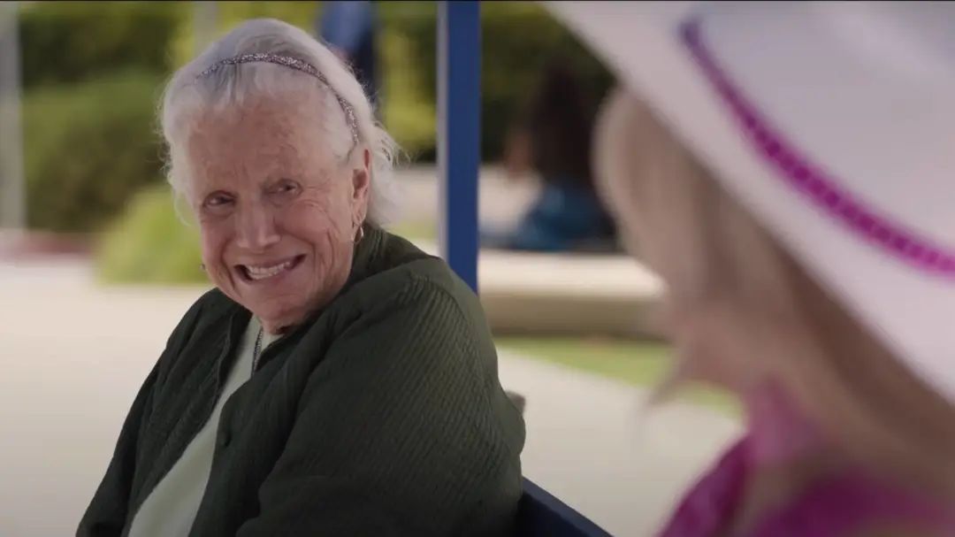 导演格蕾塔·葛韦格不允许剪掉的一幕戏,由 91 岁的奥斯卡得主、著名电影服装设计师安·罗斯客串,她扮演了一位芭比在长椅上偶遇的老妇人。