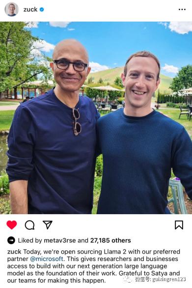 在扎克伯格的Instagram账号里,他贴出了一张与纳德拉的亲密合影以“感谢纳德拉”,扎克伯格表示: