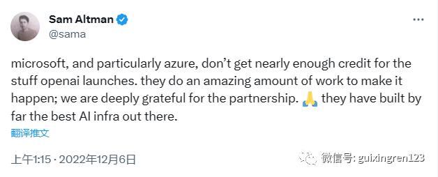 Altman本人甚至还曾经专门发推对Azure团队的给力支持表示感谢,高度评价微软是“世界上最好的AI基础设施”。