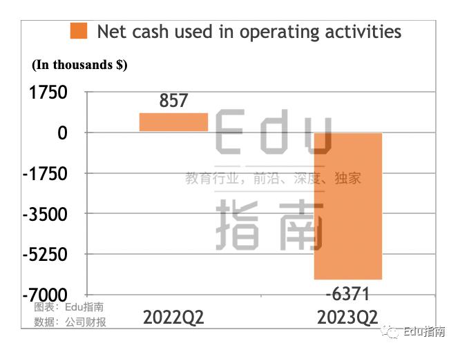 Coursera公司Q2经营活动现金流净流出637万美元,上一财年同期净流入86万美元。本季度该项现金流由流入转为流出。