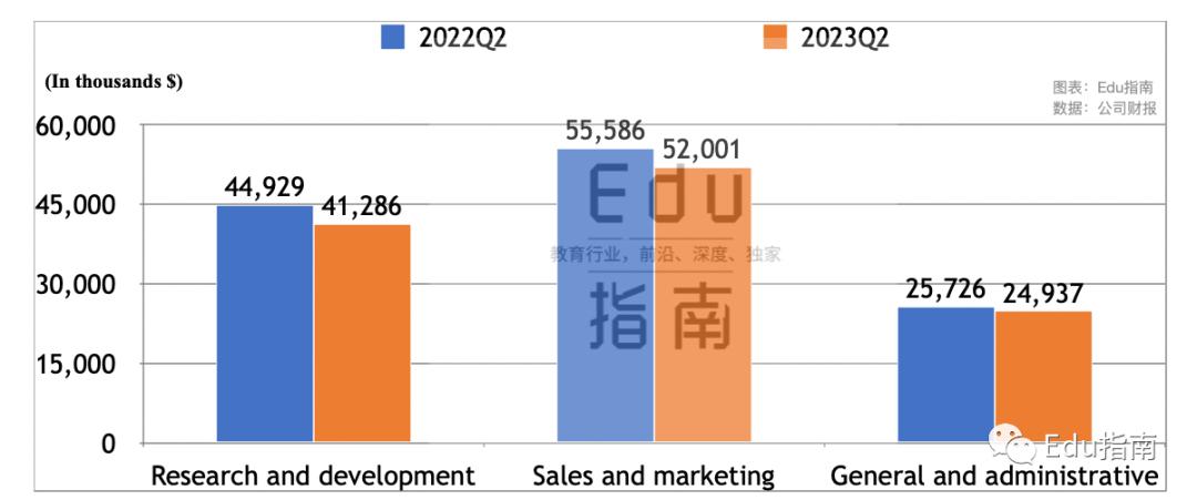 其中本季度Coursera公司销售与营销成本为5200万美元,上一财年同期为5559万美元,本季度同比下降6%。研发成本为4129万美元,同比上一财年Q2的4493万美元,该项成本下降8%。一般与行政成本为2494万美元,同比减少3%。