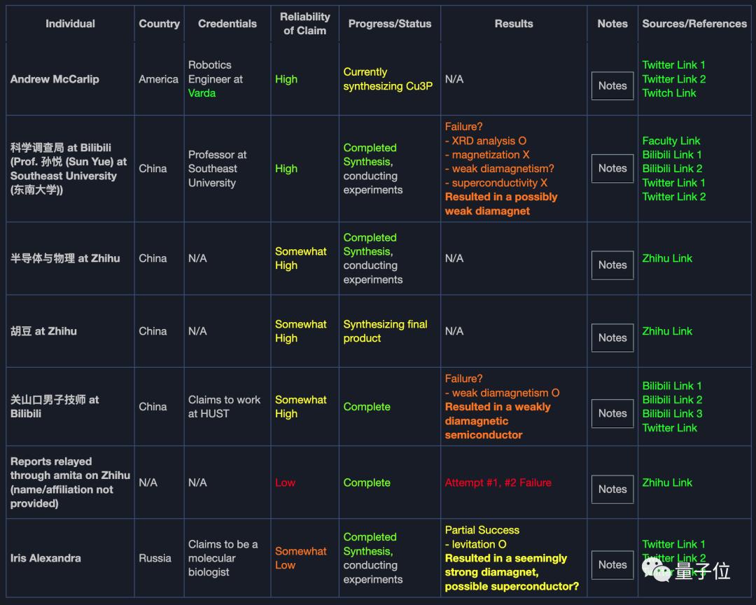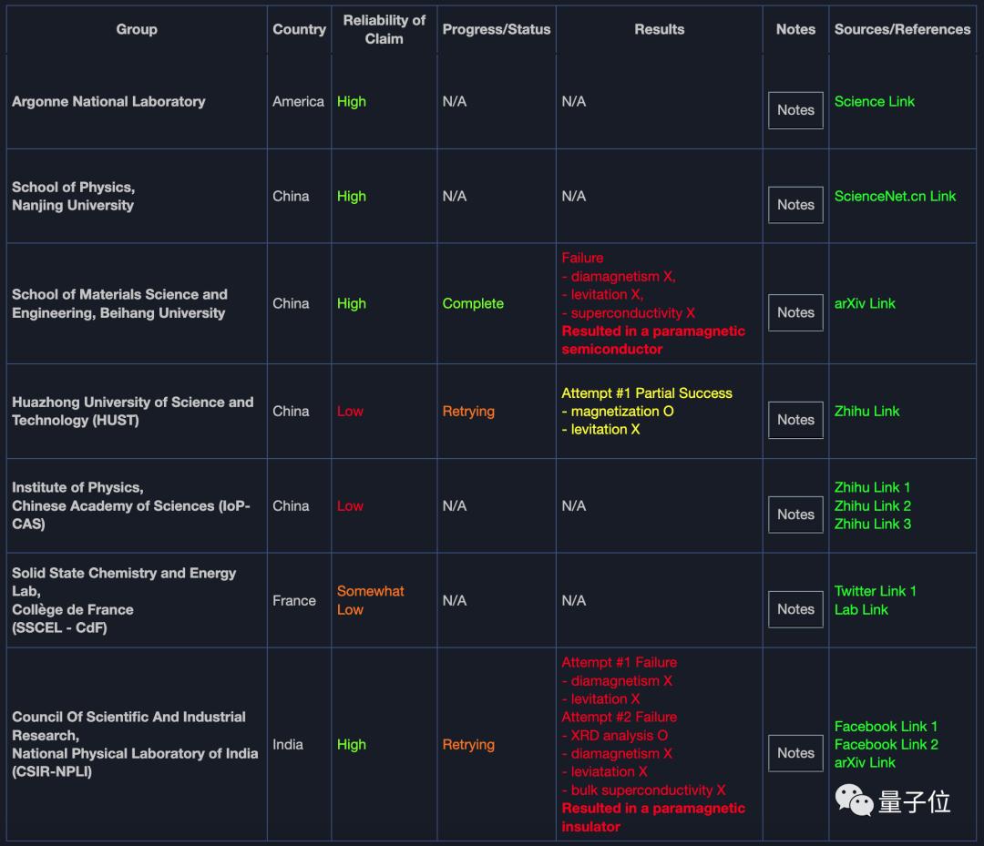 随着这项实验的热度逐步升高,有网友整理出了一份全球范围内的“竞赛名单”。