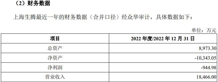根据招股书,2022年,启信宝运营主体上海生腾净资产-1亿,营业收入1.85亿,净亏损945万。