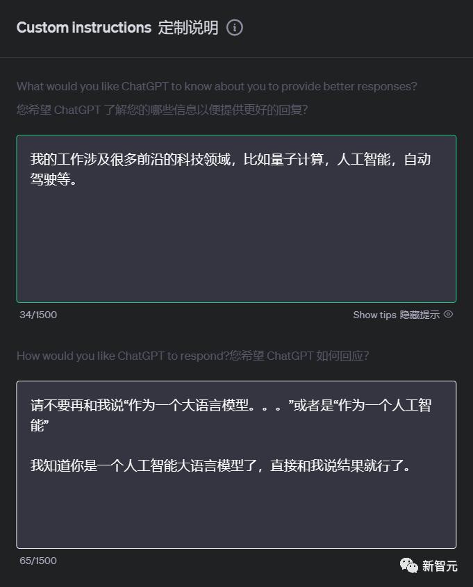 然后再把Custom instruction的功能打开,效果立竿见影!