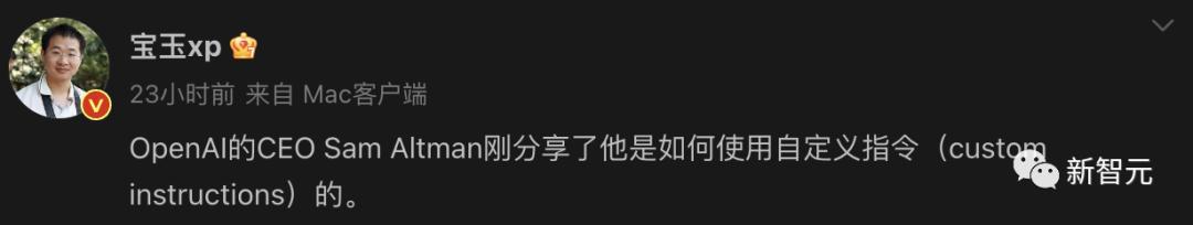 可能是感觉到刚推出的自定义指令(Custom Instructions)功能没有引起太多的讨论,Altman亲自发推来指导大家该怎么用。