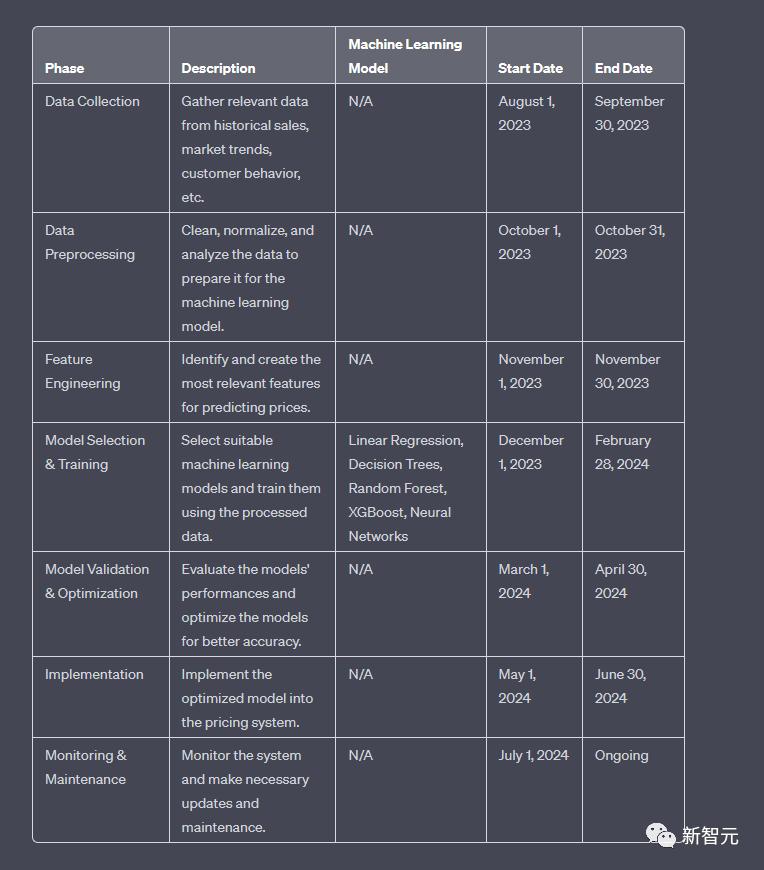 开启之后,GPT-4呈现的表格更加简洁。因为知道用户是专业的数据工程师,就删去了描述那一栏的内容。